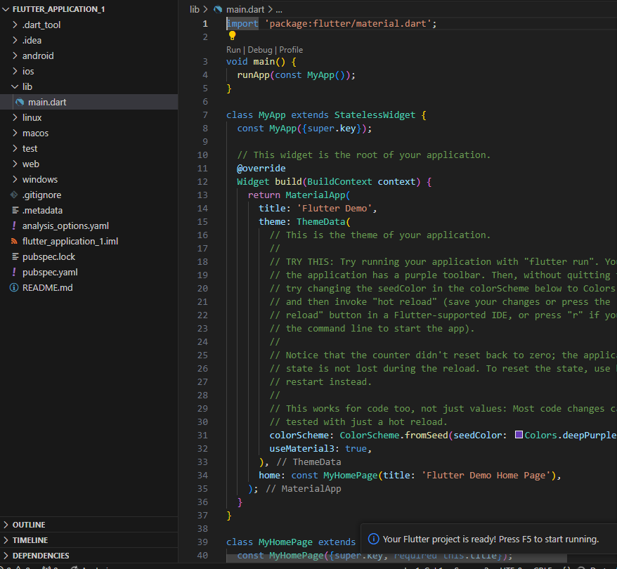 main.dart에는 기본적으로 생성되는 예제의 코드들이다.