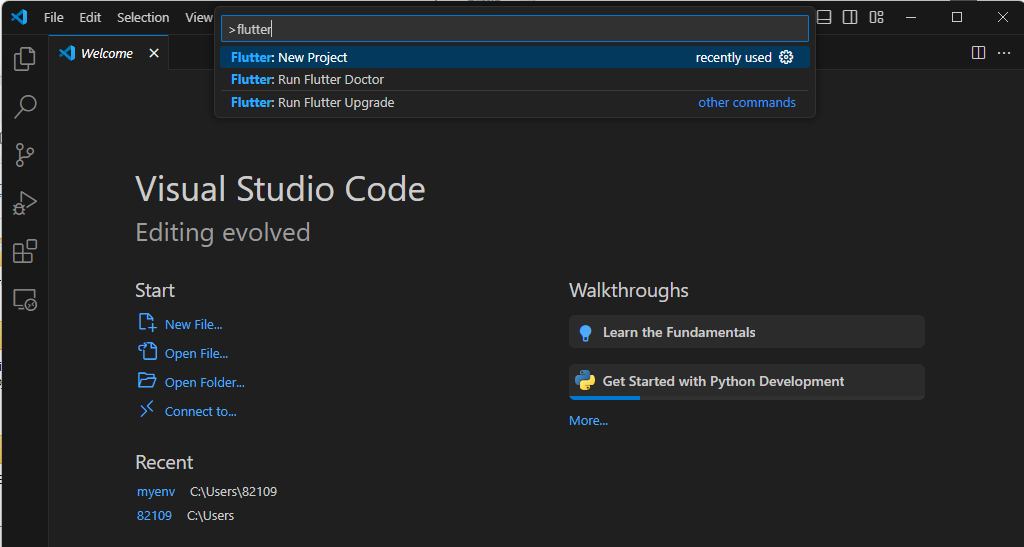 1. VS Code에서 Ctrl + shifr + p를 눌려 fullter를 검색한다.